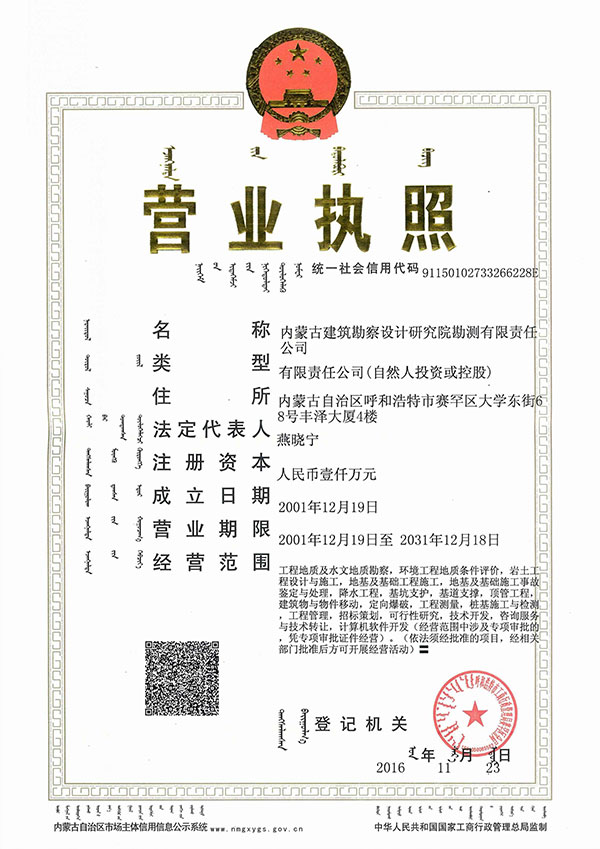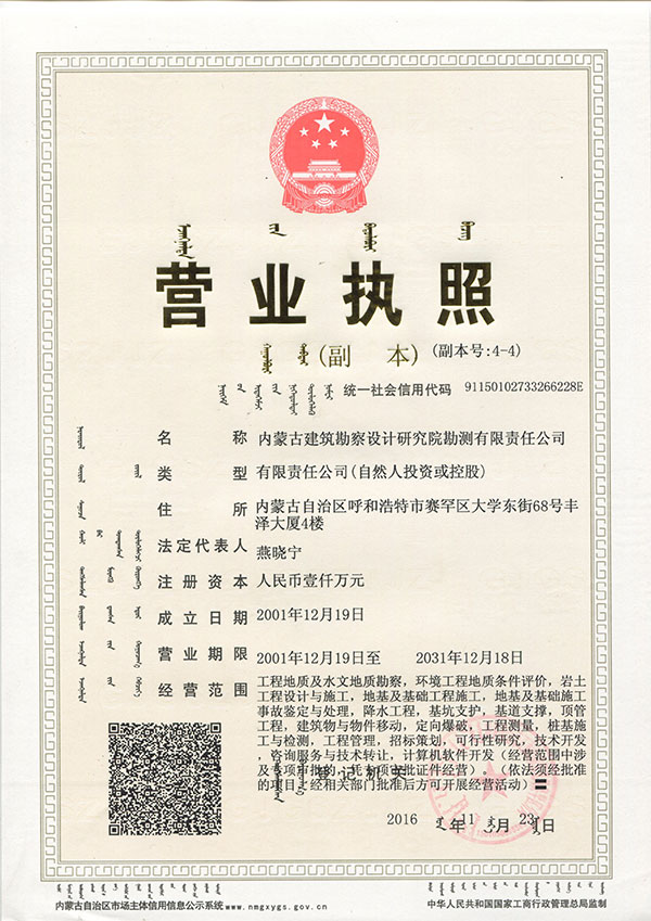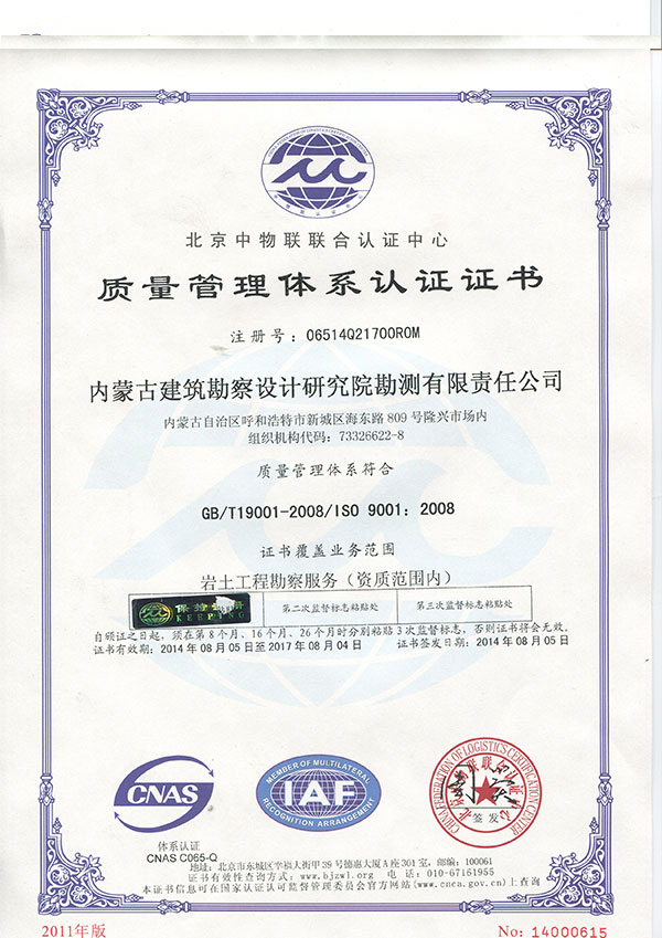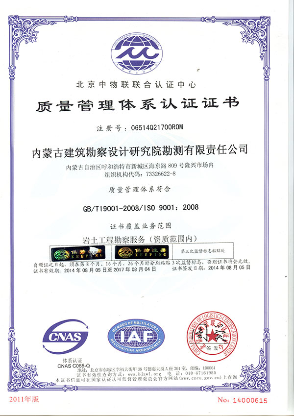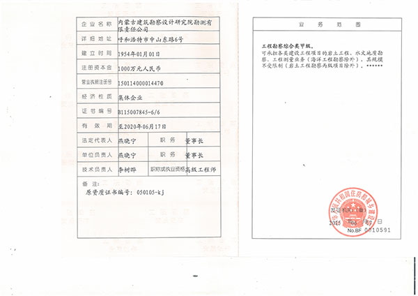 • 內蒙古建筑勘察設計研究院勘測有限責任公司,是全國首家完成 轉企建制的省級建筑勘察設計單位。公司前身為內蒙古建筑勘察 設計研究院勘測分院, 成立于1954年 ,經過六十多年的發(fā)展, 現已成為全區(qū)技術力量雄厚、專業(yè)設置齊全的集巖土工程勘察 、 設計、治理、檢測、監(jiān)理、咨詢、水文地質勘查、工程測量、科 研為一體的綜合性企業(yè) ... ... [查看詳情]